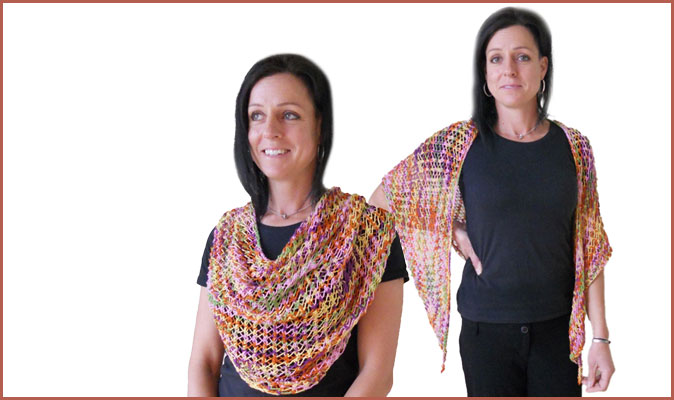 Isn't it amazing what you can do with just 2 balls of yarn?!! This stunning Summer wrap transforms into a lively addition to your Autumn scarf collection as the weather cools.