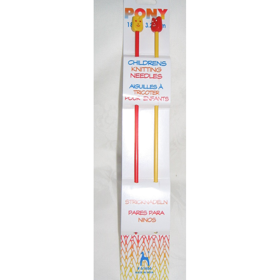 Childrens Knitting Needles Childrens Knitting Needles The perfect partner for children learning to knit. These short pairs of knitting needles contain knitting needles in two colours for easier learning. For ages 6 and up. Adult supervision recommended. Available in 4mm only. $5.00 This product was added to our catalog on Monday 29 June, 2009.