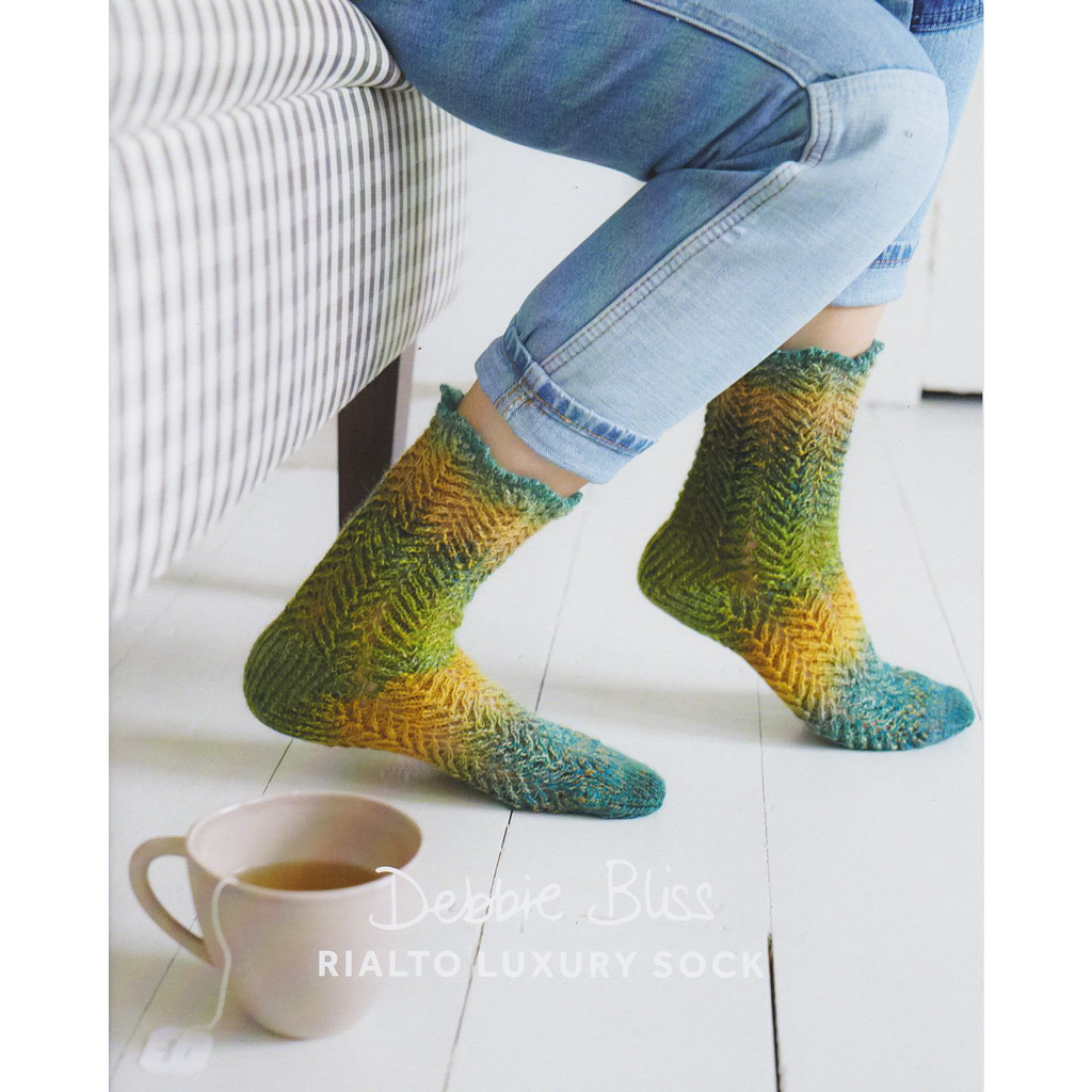 Debbie Bliss Picot Edge Lace Socks 83 For these socks you will need: 1 ball Debbie Bliss Rialto Luxury Sock yarn set of 2.25mm double pointed needles stitch markers Socks are in 2 sizes, to fit shoe size 4-7 (small) or 7-9 (large) Finished leg length is 19 (20)cm. Click on the picture (right) for a closeup view of these stunning socks! $6.00