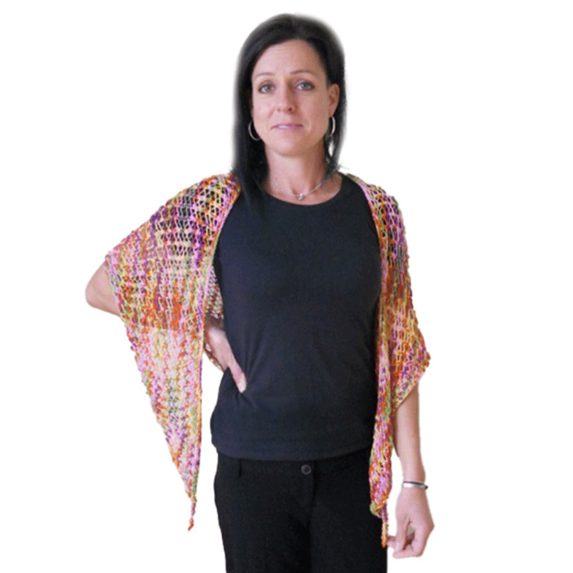 Choose from the multi-shade Infinity Scarf (pictured left) or Lacy Scarf/Wrap (pictured in white as a Wrap, centre) - or both!