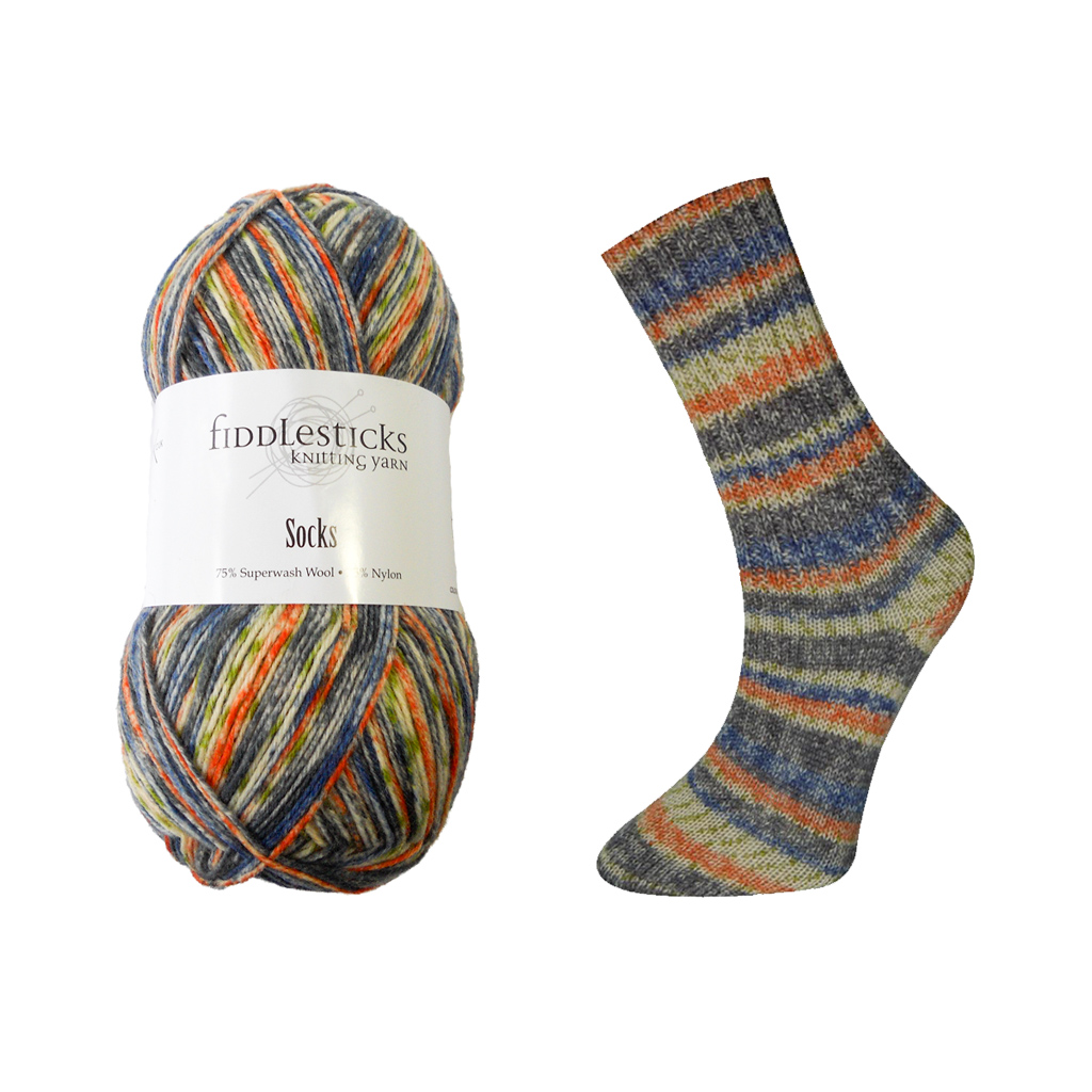 Knit beautiful multi-shade wool-rich socks with Fiddlesticks Sock knitting yarn.