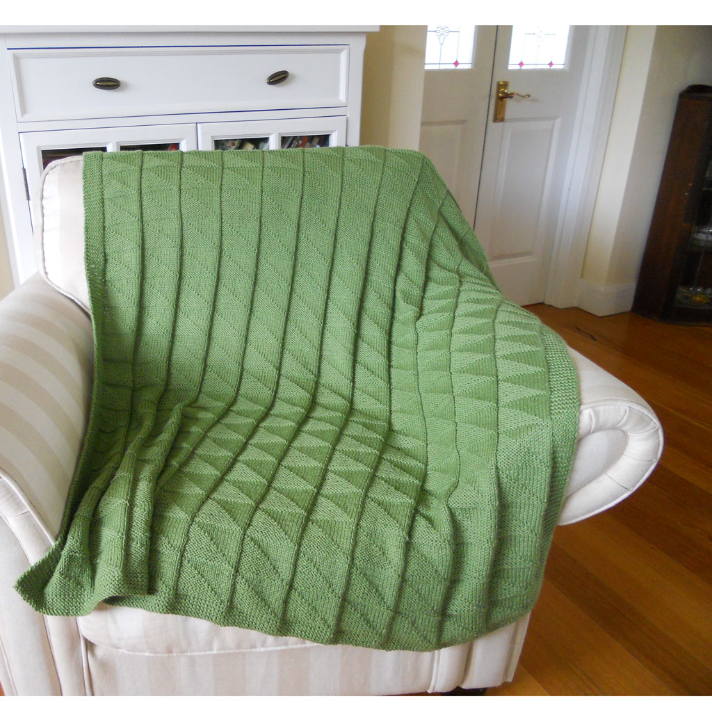 Beautiful pure wool throw in popular Cleckheaton Country 8ply yarn, featuring a stunning triangle motif