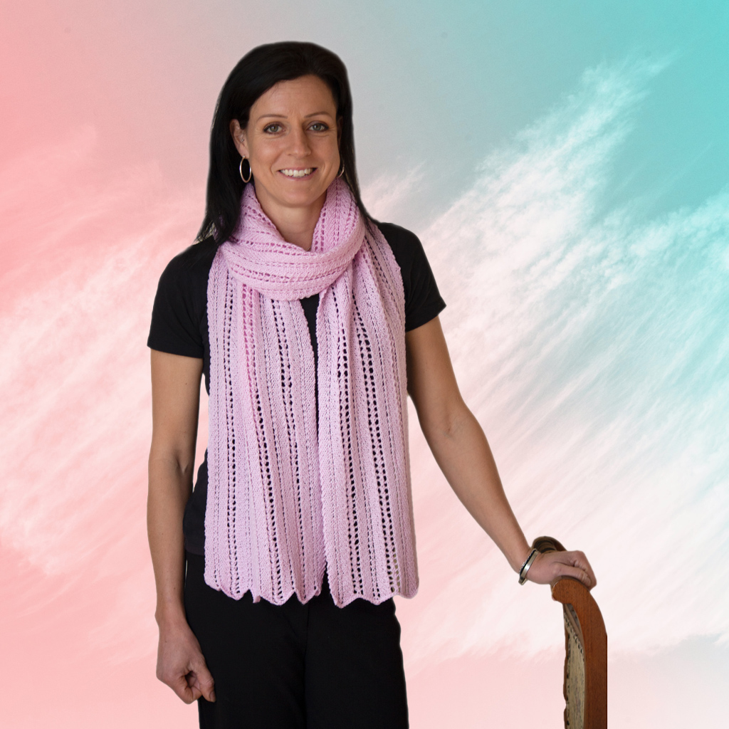 The ladder lace patterning and soft pure merino of this scarf ensures it drapes beautifully. The scarf features gorgeous scalloping along both ends, and due to the generous length, can be worn in a multitude of styles, from draped to wrapped to knotted.