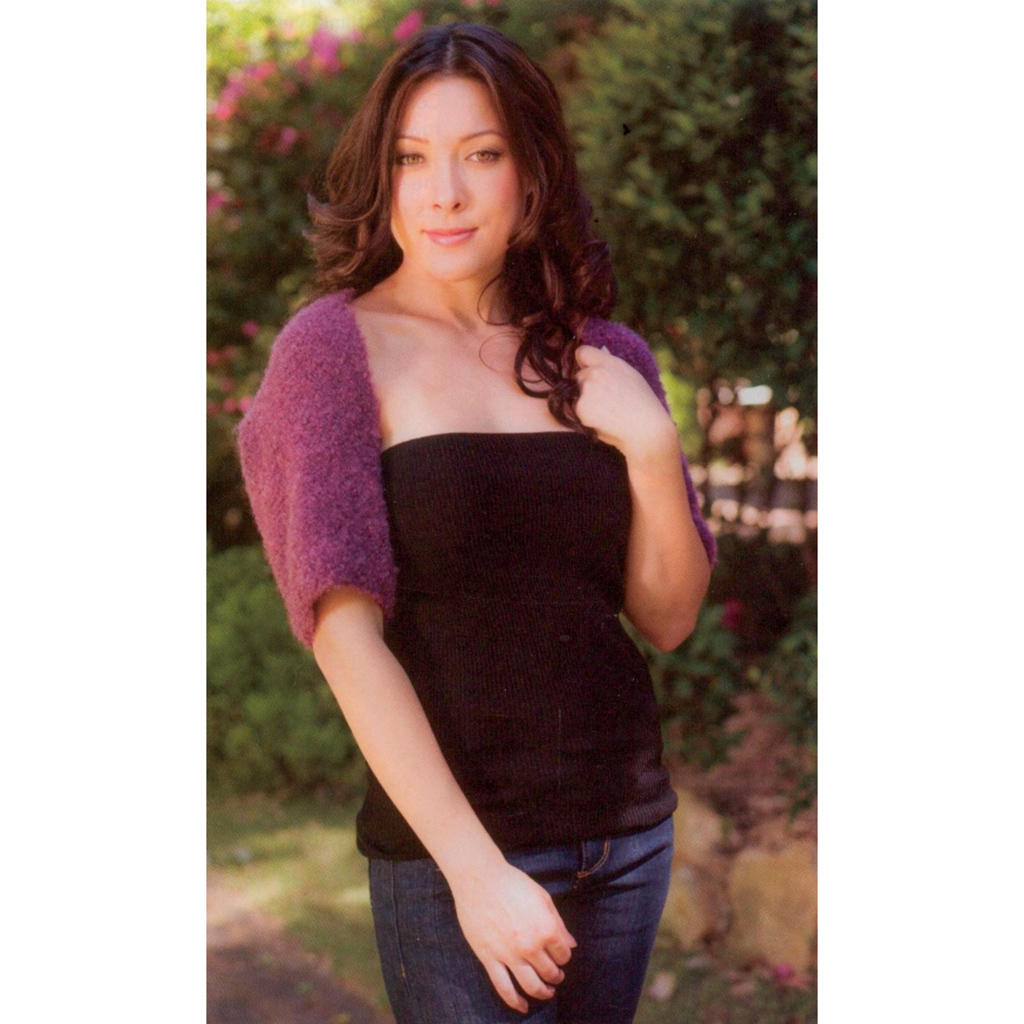 Warmth without weight: this easy to knit shrug looks divine over eveningwear or casualwear... and its snuggly comfort will be your little secret!