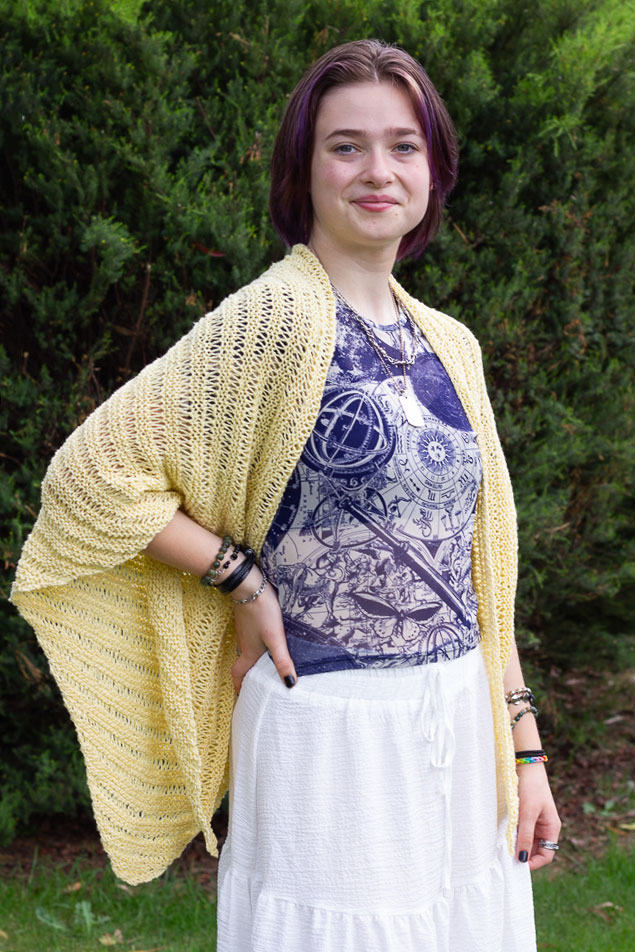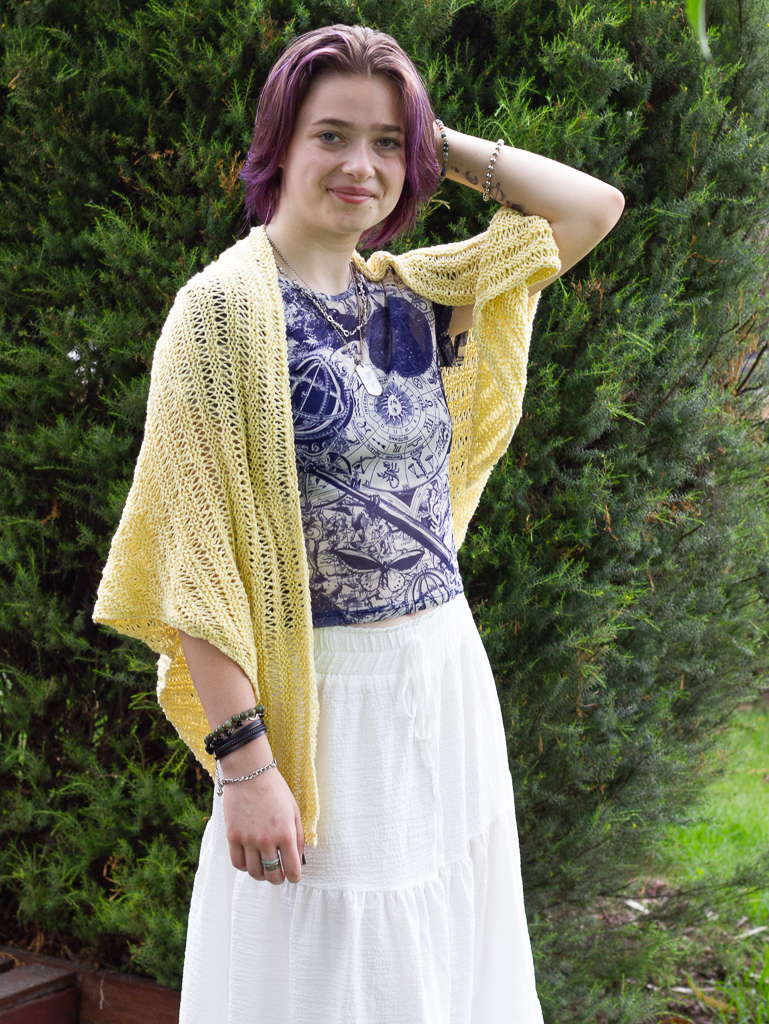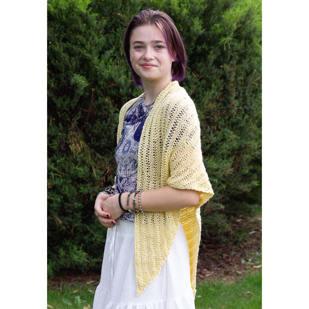* Note: our model is wearing the Papyrus Shawl in Shade Maize.