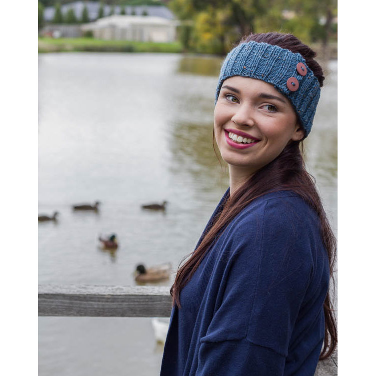 - a copy of our exclusive Pure Wool Earwarmer with Button Trim pattern