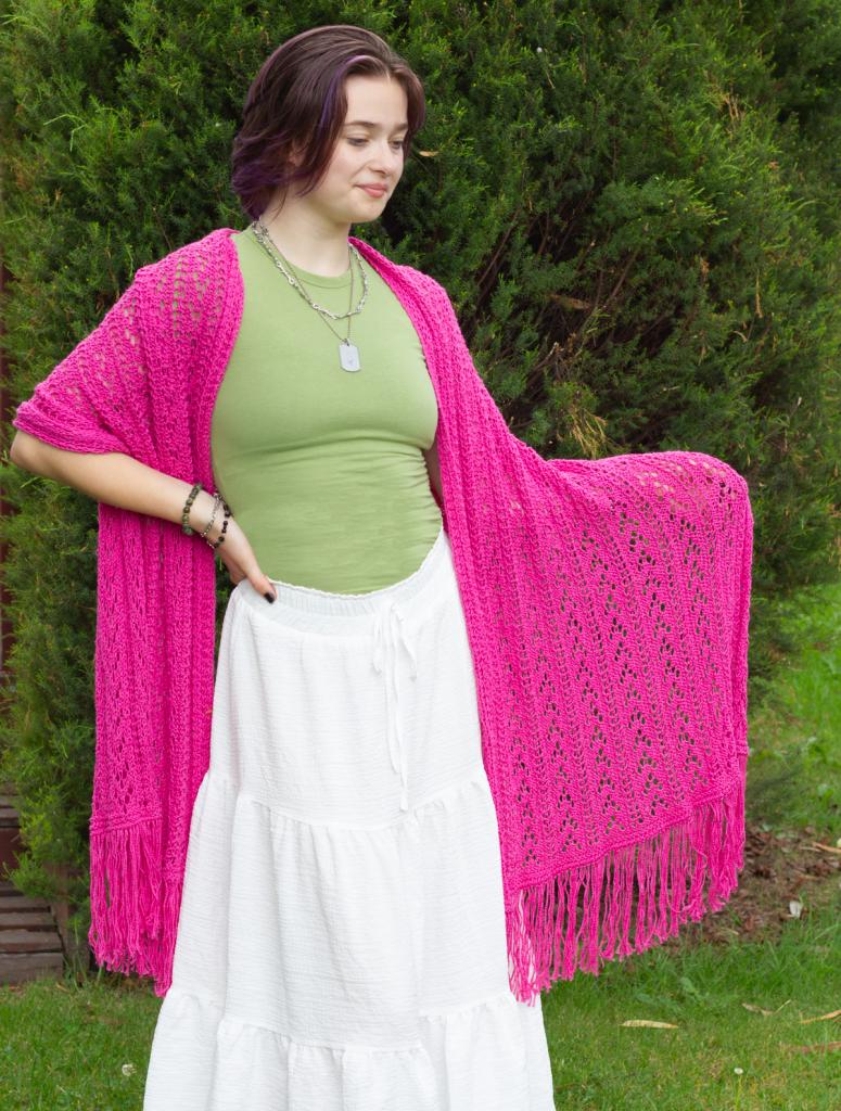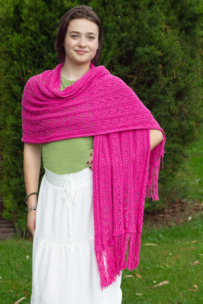 * Note: our model is wearing the Summer Living Bamboo Wrap in shade 214 Super Pink. Click on the main picture to see an enlargement of this beautiful pattern.