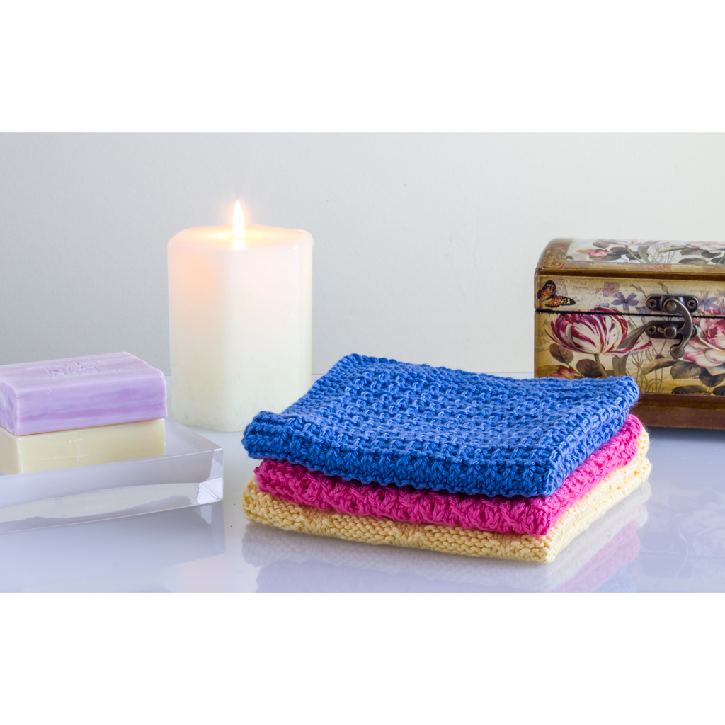 - copies of our exclusive pattern leaflets for each of the 3 face washer designs, as pictured; Pique Diamonds, St Johns Wort and Hurdle Stitch