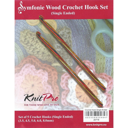 - Set of 5 single-ended crochet hooks in the most popular sizes: 3.5mm, 4.5mm, 5mm, 6mm and 8mm