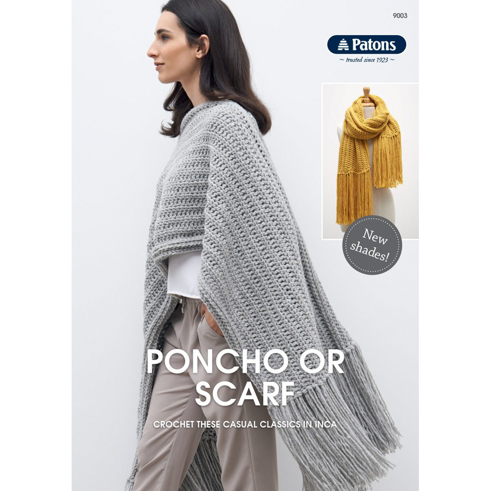 Crochet these casual classics in chunky Inca. Both the Poncho and Scarf are easy crochet projects to craft.
