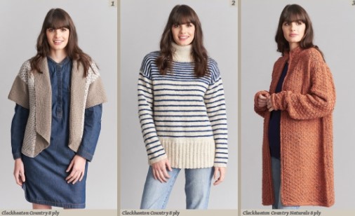 'Country 8ply Style' features 3 contemporary designs for everyday wear in Country 8ply and Country Naturals 8ply.